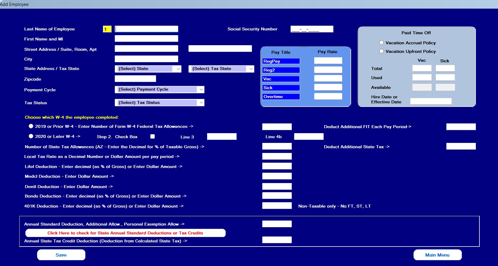 100 employees maximum per company. All employee record information on one screen. |